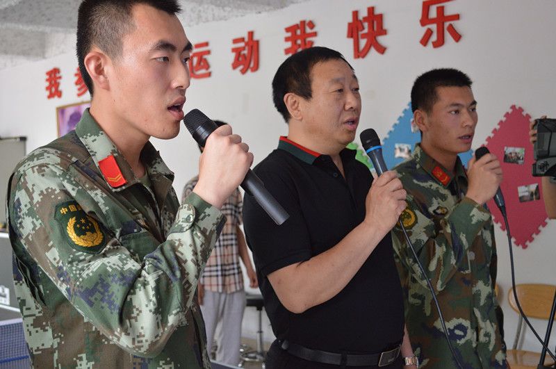董事長關(guān)心官兵們的文娛生活,現(xiàn)場與官兵們合唱