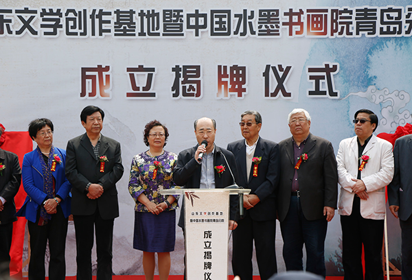 4月28日上午,青島東方海納集團(tuán)主辦的山東文學(xué)創(chuàng)作基地暨中國水墨書畫院青島分院揭牌儀式圓滿舉行。儀式現(xiàn)場群賢畢至,省文聯(lián)副主席孫梽文;省政協(xié)常委、省作協(xié)副主席、《山東文學(xué)》主編李掖平;原青島人大副主任徐國軒;原青島市文學(xué)藝術(shù)界聯(lián)合會主席、青島書畫美術(shù)創(chuàng)作院院長李愷心;原青島市文聯(lián)主席紀(jì)宇;青島市文學(xué)藝術(shù)界聯(lián)合會黨組書記牛魯平;青島市民革副主委、市政協(xié)常委、副秘書長王維禮;山東省書協(xié)副主席、青島市書協(xié)副主席張偉;中國水墨書畫院院長袁鳳文;青島中山書畫院院長劉世?。磺鄭u市人大代表、青島東方海納集團(tuán)董事長張曉林等相關(guān)領(lǐng)導(dǎo)發(fā)表重要講話并參與揭牌。