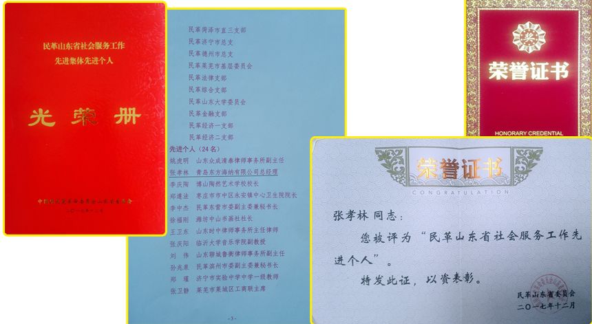 隨后,大會對2017年度民革山東省委先進集體和個人進行隆重表彰,我集團公司董事長張曉林被光榮表彰為“民革山東省社會服務工作先進個人”(青島市唯一),這即是對張曉林董事長個人工作的充分肯定,也是對東方海納人長期以來勤懇努力工作,無私回饋社會與矢志愛國奉獻的高度稱贊。