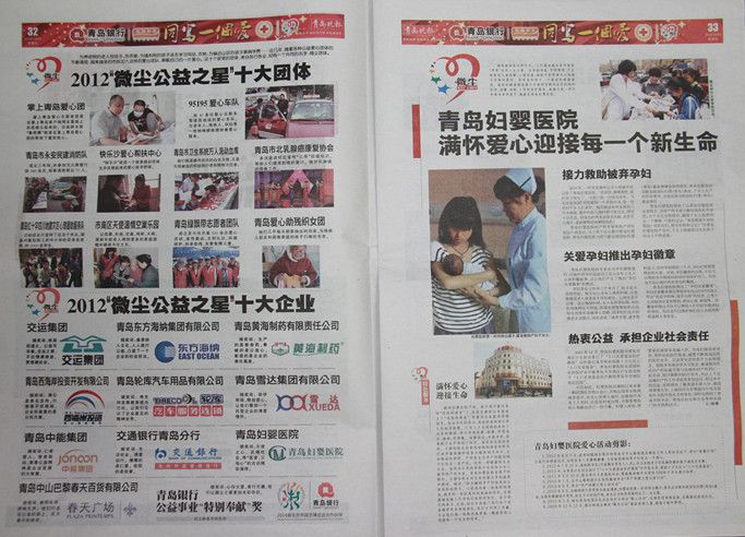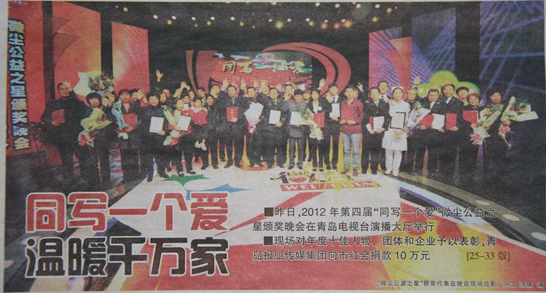 翌日,在青島早報(bào)、青島晚報(bào)等報(bào)紙登出了個(gè)人、團(tuán)體、企業(yè)十大微塵公益之星。